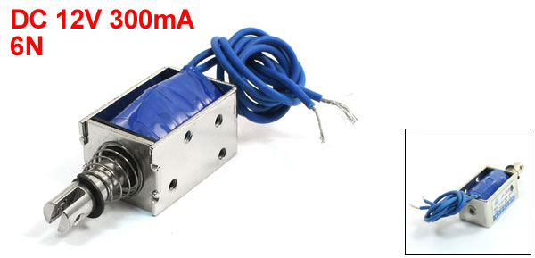 Product Name DC Solenoid Electromagnet Model JM-0630 Rated Voltage & Current DC 12V 300mA Action Form Push Pull Type Force 6N Stroke 6.5mm/0.26" Route 10mm/0.4" Body Size 30 x 19 x 16mm/1.6" x 0.75" x 0.64"(L*W*H) Cable Length 20cm/7.8" Material Metal, Electronic Parts Weight 32g Package Content 1 x DC Solenoid Electromagnet - Reviews