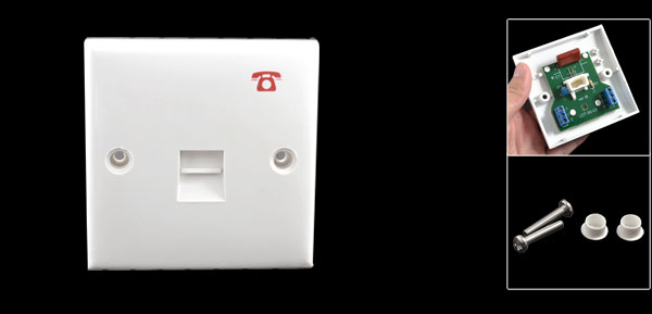 Product Name RJ11 Wall Plate Fit for 6P4C RJ11 Plug Shape Square Material Plastic, Electronic Parts Color White Size 8.5 x 8.5 x 1.1cm/ 3.3'' x 3.3'' x 0.4'' (L*W*T) Weight 45g Package Content 1 x RJ11 Telephone Wall Plate