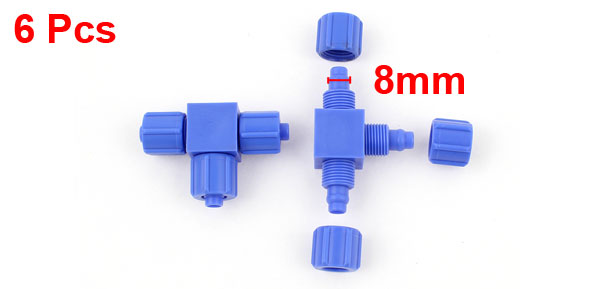 6pcs 1 to 2 Ways Blue PVC Pneumatic Quick Coupler Pipe Connector for 8mm OD Hose