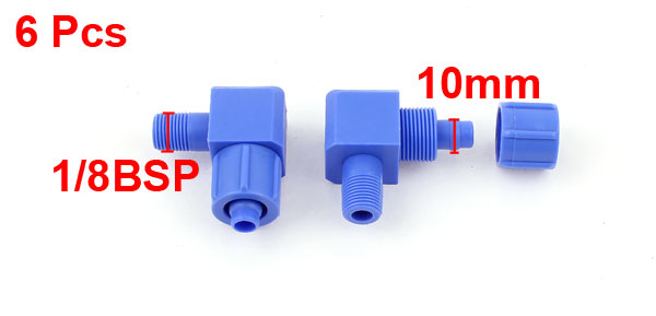 Product Name Pneumatic Quick Pipe Coupler Design Right Angle Fit Hose OD 10mm/0.4" Male Thread 10mm/1/8BSP Material PVC Size (Approx) 36 x 32 x 18mm / 1.4" x 1.2" x 0.7" (L*W*T) Color Blue Net Weight 70g Package Content 6 x Pneumatic Quick Pipe Coupler - Reviews