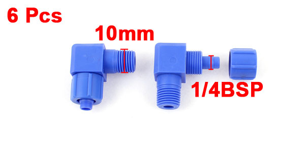 Product Name Pneumatic Quick Pipe Coupler Design Right Angle Fit Hose OD 10mm/0.4" Male Thread 13mm/1/4BSP Material PVC Size (Approx) 35 x 34 x 18mm / 1.4" x 1.2" x 0.7" (L*W*T) Color Blue Net Weight 73g Package Content 6 x Pneumatic Quick Pipe Coupler - Reviews