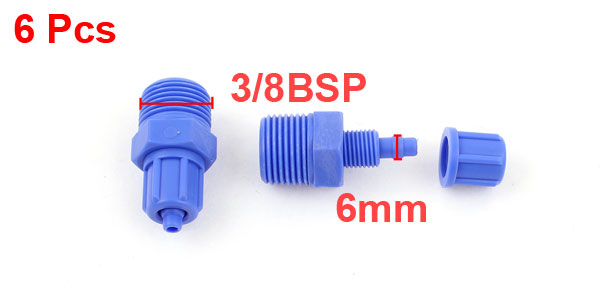 Product Name Pneumatic Quick Pipe Coupler Design 2 Ways(Straight) Fit Hose OD 6mm/0.4" Male Thread 16mm/3/8BSP Material PVC Size (Approx) 35 x 19mm / 1.4" x 0.75" (L*Max. D) Color Blue Net Weight 35g Package Content 6 x Pneumatic Quick Pipe Coupler - Reviews