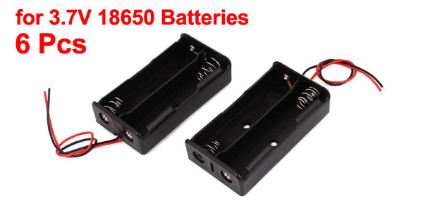 Details6pcs 2 x 3.7V 18650 Batteries Plastic Battery Storage Box Holder Case Black  Main Color Black, Red Net Weight 83g Country of Manufacture CHINA Package Content 6 x Battery Case Holder Material Plastic, Metal Cable Length( Each ) 14cm/5.5" Battery Type 2x3.7V 18650 Batteries (Batteries (not included) Body Size 76x41x19mm/3"x1.6"x0.75"(L*W*H)