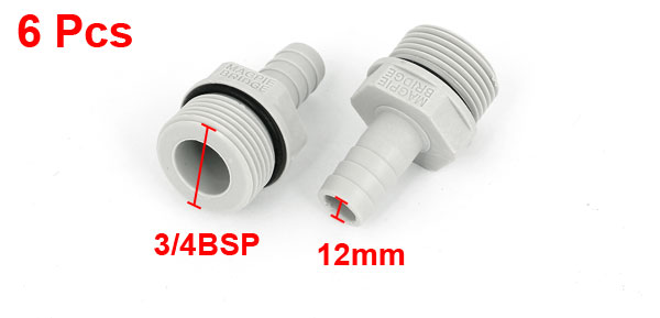 6pcs 3/4BSP Male Thread Hose Barb Fitting Coupler Joint for 12mm Inner Dia Pipe