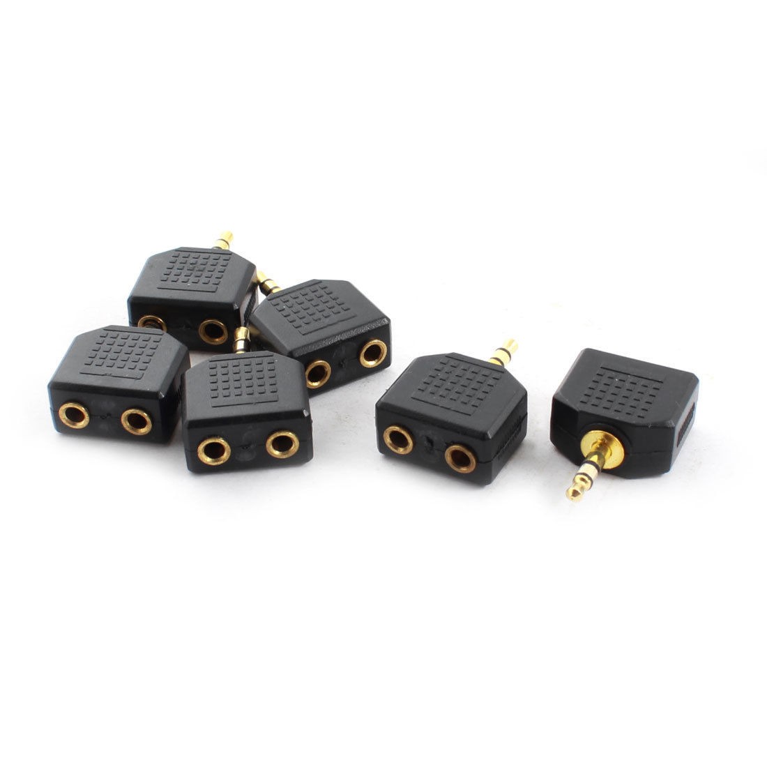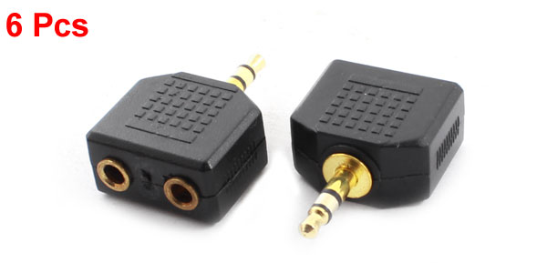 6pcs 3.5mm Male to 2 Female Stereo Audio Plug Jack Convertor Adapter