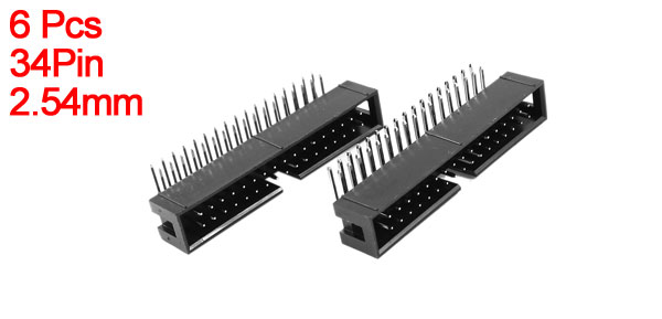 6pcs 34 Pins Dual Row 2.54mm Pitch 90 Degree Box Pin Header Cable Connector