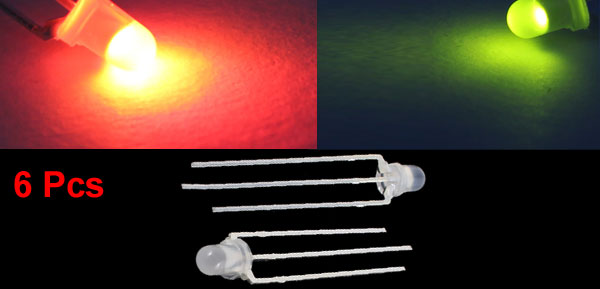 6pcs 3mm Head Green Red Bi-Color Light DIP Common Cathode LED Emitting Diode