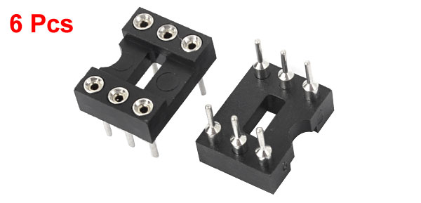 Product Name DIP IC Socket Pitch 2.54mm / 0.1" Number of Pins 6 Each Size(Approx) 10 x 8 x 7.5mm / 0.39" x 0.31" x 0.30" (L*W*H) Material Plastic, Metal Color Black, Silver Tone Net Weight 4g Package Content 6 x DIP IC Socket - Reviews
