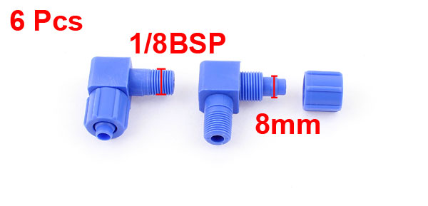 Product Name Pneumatic Quick Pipe Coupler Design Right Angle Fit Hose OD 8mm/0.3" Male Thread 9mm/1/8BSP Material PVC Size (Approx) 30 x 29 x 14mm / 1.2" x 1.1" x 0.55" (L*W*T) Color Blue Net Weight 39g Package Content 6 x Pneumatic Quick Pipe Coupler - Reviews