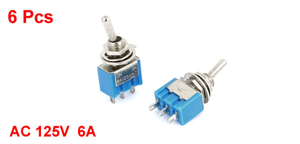 6Pcs AC 125V 6A ON-PFF-ON 3 Position SPDT 3 Terminals Toggle Switch
