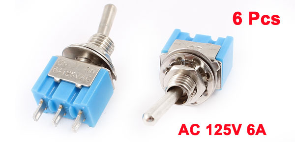 6Pcs AC 125V 6A SPDT 3 Pin 2 Position On/On Locking Toggle Switch Blue