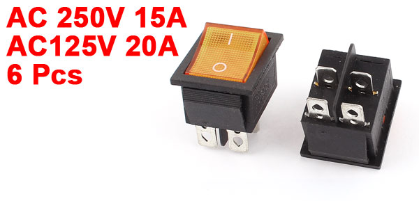 6pcs AC 250V 15A AC125V 20A Rocker Switch ON/OFF DPST Panel Mount Snap-In 4 Pins