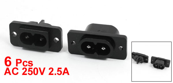 6pcs AC 250V 2.5A 2 Pins IEC320 C8 Inlet Male Power Plug Socket Black