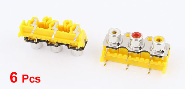 Product Name RCA Socket Type 3 RCA Female Outlet Material Plastic, Metal Color Yellow, Red, White, Silver Tone Size 4.1 x 2.1 x 1.9cm/1.6'' x 0.8'' x 0.7'' (L*W*H) Weight 36g Package Content 6 x RCA Sockets - Reviews