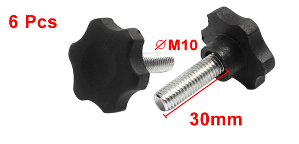 6pcs Black Plastic 40mm Head Diameter Star Clamping Knobs M10 x 30mm