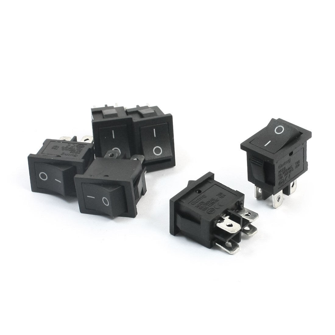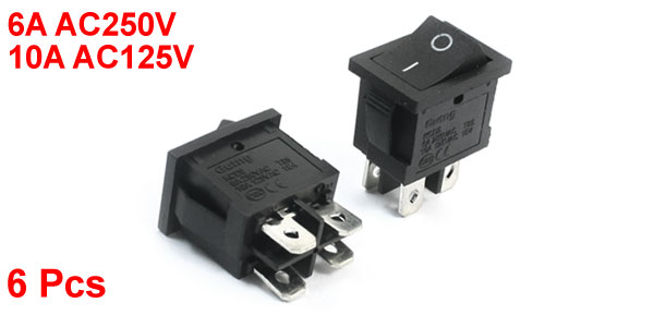 6Pcs DPST ON/OFF 4Pin Black Head Rectangle Rocker Switch AC250V 6A AC125V 10A
