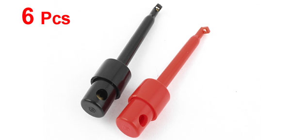 Main Color Black, Red Brand DMiotech Net Weight 13g Total Size(Each) 58 x 12mm/2.3" x 0.47"(L*D) Country of Manufacture CHINA Package Content 2 x Red Testing Hooks 4 x Black Testing Hooks Material Plastic, Metal Hook Length(Max.) 3.5mm/1.4" Hole Diameter 4mm/0.16" - Reviews