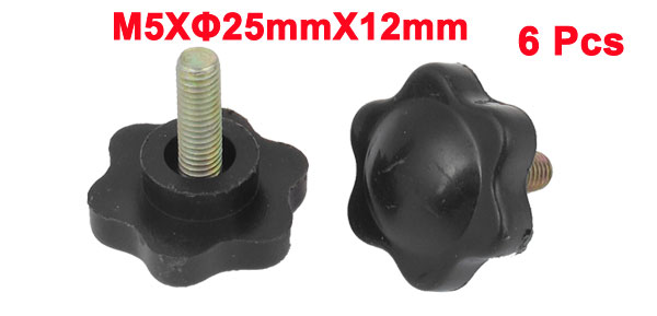 6pcs M5 Thread 12mm Length 25mm Diameter Star Head Clamping Knob