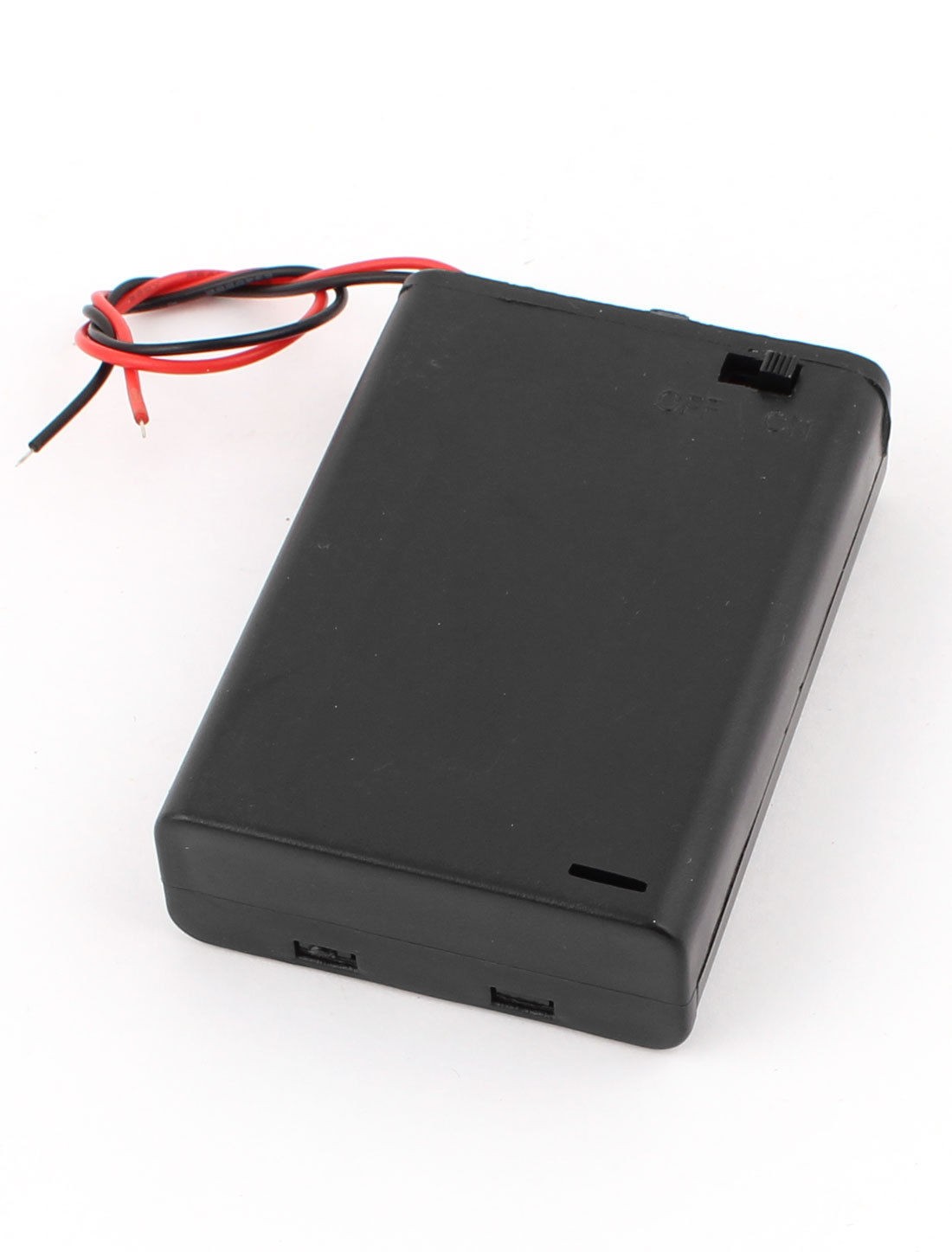 6" Lead 3 x 1.5V AA Battery Box Case Holder with Cover ON/OFF Switch Black