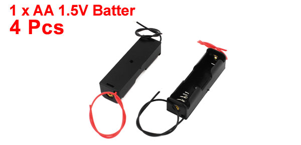 6" Wire Lead Clip 1 x AA 1.5V Battery Holder Storage Box Case 4PCS