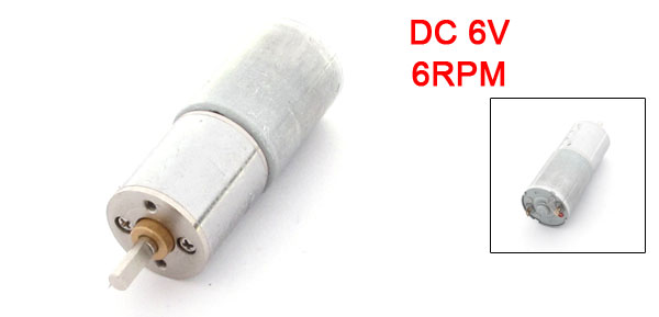 Product Name DC Geared Motor Rated Voltage DC 6V Speed 6RPM Shaft Diameter 3mm/ 0.12" Overall Size 17 x 54mm/ 0.67" x 2.1" (D*H) Main Color Silver Tone Material Metal Weight 32g Package 1 x DC Geared Speed Reduce Motor - Reviews