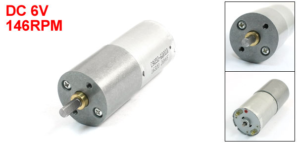 Product Name Carbon Brush DC Geared Motor Model JGA25-370RC No Load Speed 146RPM Working Voltage DC 6V Current 20mA Torque 0.1KG CM Gearbox Size 26 x 25mm/1" x 1"(L*D) Mounting Screw Hole Diameter 2.5mm/0.1" Shaft Size 4mm/ 0.16", 2mm/ 0.08" Motor Part Size 31 x 24mm/ 1.2" x 0.94"(L*D) Main Color Silver Tone Material Metal Weight 99g Package 1 x Carbon Brush DC Geared Motor - Reviews