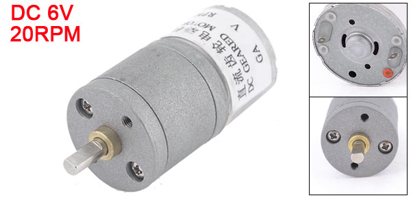Product Name DC Geared Motor Rated Voltage DC 6V Output Speed 20RPM Shaft Diameter 4mm/ 0.16" Gearbox Part Size 25 x 25mm/ 1" x 1"(D*L) Motor Part Size 25 x 17mm/ 1" x 0.7"(D*L) Total Length(Approx) 55mm/ 2.2" Material Metal, Electronic Parts Color As Picture Shown Weight 73g Package Content 1 x DC Geared Motor - Reviews