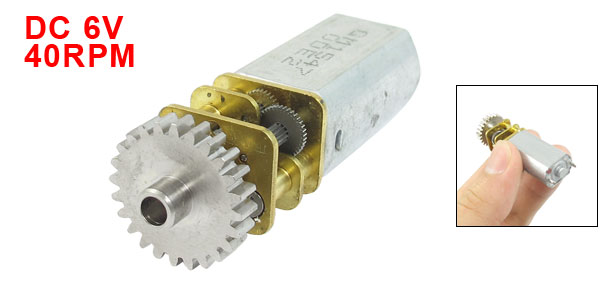 Product Name Geared Motor Model 050 Rated Voltage 6VDC Speed 40RPM Pin Quantity 2 Whell Dia 16mm/0.63" Body Size 25 x 12 x 10mm/ 0.98" x 0.47" x 0.39" (L*W*T) Material Metal, Electronic Parts Weight 28g Package 1 x Geared Motor - Reviews
