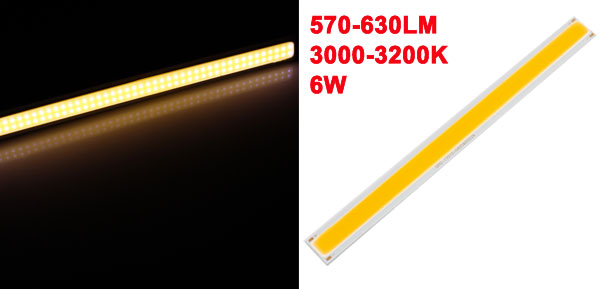 Color Temperature 3000-3200K power consumption 6W Material Electronic Parts Body Size 170 x 15 x 3mm/ 6.7" x 0.6" x 0.1"(L*W*T) Emitter Color Warm White Net Weight 14g Package Content 1 x COB LED Lamp Bead - Reviews