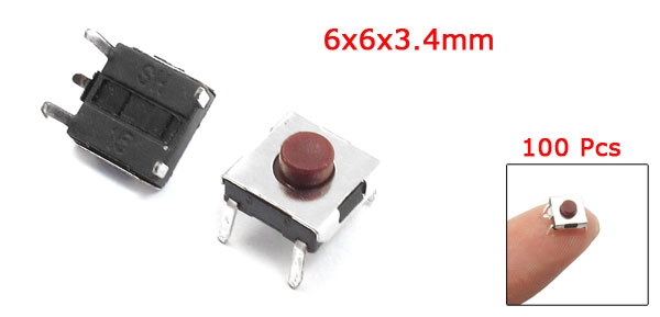 6x6x3.4mm 100 Pcs Momentary Red Push Button Tactile Tact Switches