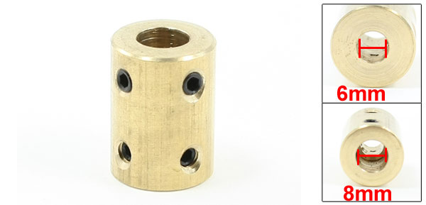 Product Name Motor Wheel Coupling Bore 6mm / 15/64", 8mm/ 5/16" Overall Size 16 x 22mm / 0.63" x 0.86"(D*L) Material Copper Color Gold Tone Net Weight 30g Package Content 1 x Motor Wheel Coupling - Reviews