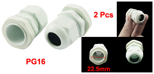 Product Name Cable Gland Model PG16 Degree of Protection IP67 (Water Proof) Cable Range 7-12mm / 0.28"- 0.47" Thread O.D. 22.5mm / 0.89“ Thread Length 10mm / 0.39” Total Size 38 x 24mm / 1.5" x 0.94" (D*H) Material Plastic Color White Weight 27g Package Content 2 x Cable Gland - Reviews