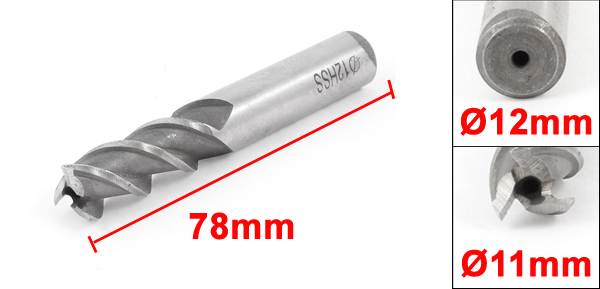Product Name End Mill Cutter Material HSS Color Silver Tone Flute Number 4 Cutting Dia 11mm/ 7/16" Cutting Depth 36mm/1.4" Shank Diameter 12mm/ 15/32" Total Length 78mm/3.1" Weight 52g Package Content 1 x End Mill Cutter