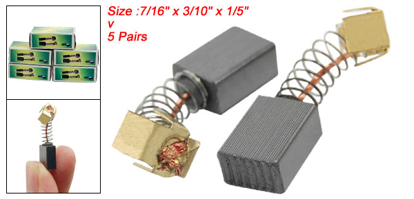 Product Name Motor Carbon Brush Fit for Generic Electric Motor Carbon Brush Size (Each) 11 x 8 x 5mm / 7/16" x 3/10" x 1/5" (L*W*H) Total Length (Approx.) 27cm / 1" Net Weight 16g Package Content 5 Pairs of Motor Carbon Brushes - Reviews