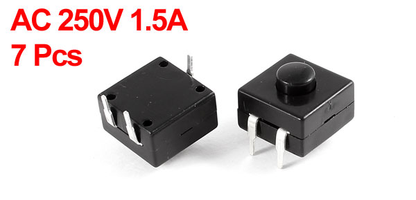 7 Pcs Vertical 3 Pins Push Button Switch Black AC 250V 1.5A for Electric Torch