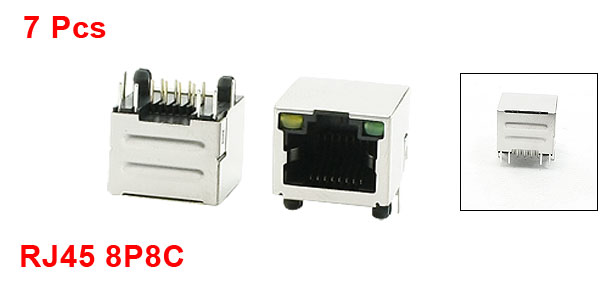 Product Name RJ45 LED Jack Feature RJ45 8P8C Main Material Plastic, Stainless Steel Color Black, Silver Tone LED Quantity 2 LED Color Green, Yellow Total Pin Number 12 Pin Type Round Pin Pin Angle Right Angle Pins(PCB Plug-in Type, Horizontal ) Each Size (Approx.) 16 x 16 x 13mm / 0.63" x 0.63" x 0.51" (L*W*H) Net Weight 29g Package Content 7 x RJ45 LED Jack - Reviews