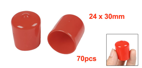 70 Pcs 30mm Height 22mm Inner Dia Round Tip Red PVC Insulated End Caps