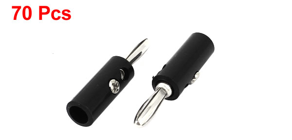 Details70 Pcs Multimeter Cable Connector Black Binding Post Test Probe 4mm Banana Plug  Product Name 4mm Banana Plug Material Metal, Plastic Color Black, Silver Tone Fit for Cable Dia. 6mm Total Size 39 x 8mm/ 1.5" x 0.31" (L*Max.D) Weight 203g Package Content 70(+/-2%)Pcs x 4mm Banana Plug