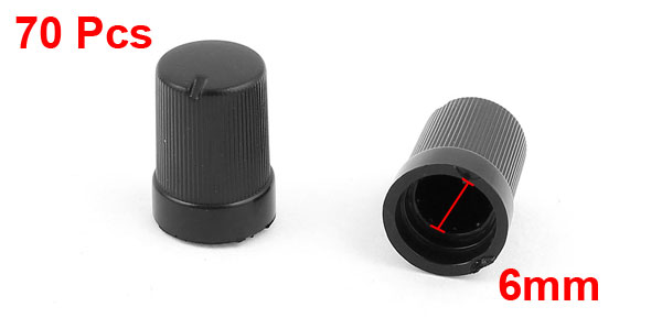 70pcs Black Potentiometer Knob Cap for 6mm Knurled Shaft