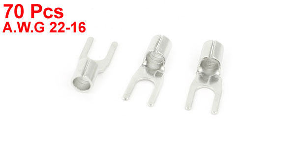 70pcs SNB1.25-3 Non-Insulated Spade Cable Fork Terminals Stud Connector AWG22-16