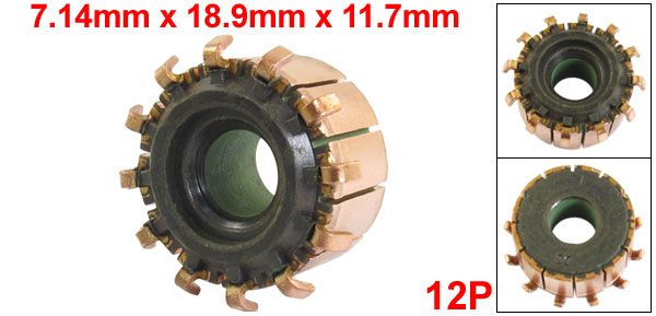 Product Name Motor Commutator Copper Bar Number 12P Total Length 7.14 x 18.9 x 11.7mm/0.34" x 0.7" x 0.5"(ID*OD*T) Material Copper, Feerite Color Copper Tone, Black Net Weight 8g Package Content 1 x Motor Commutator - Reviews