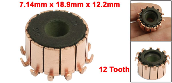 Product Name Commutator Color Copper Tone Material Copper, Steel Size 7.14 x 18.9 x 12.2mm / 7/25" x 3/4" x 31/64" (Shaft D*OD*H) Gear Tooth Quantity 12 Pcs Net Weight 6g Package Content 1 x Commutator - Reviews