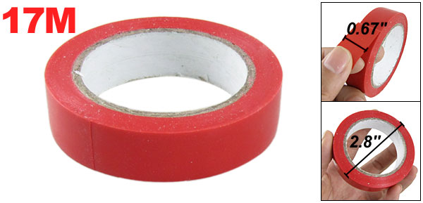 Product Name Insulation Tape Tape Width 17mm/0.67'' Tape Thickness 8mm/0.3'' Tape Length 17M / 55.7ft Overall Diameter 71mm/2.8'' Material PVC Color Red Weight 44g Package Content 1 x Adhesive Insulation Tape - Reviews