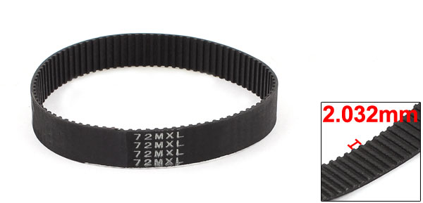 Product Name Timing Belt Model 72MXL Number of Teeth 90 Pitch 2.032mm / 0.08" Tooth Height 0.51mm / 0.02" Tooth Width 1.14mm / 0.04" Belt Width 10mm / 0.4" Belt Girth 182.88mm/ 0.6Ft/ 7.2" Total Height 1.14mm/0.04" Belt Material Neoprene (Synthetic Rubber) Core Wire Material Glass Fiber Color Black Net Weight 3g Package Content 1 x Timing Belt - Reviews