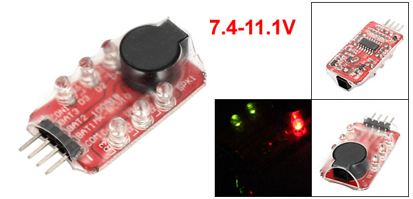Product Name Cell Lipo Battery Low Voltage Alarm Buzzer Speaker Pin Number 4 Fit Lipo Battery Capacity 7.4-11.1V Low Voltage Alarm Mode for 2-3S LED Numbers 6 Total Size 39 x 20 x 10mm/ 1.5" x 0.8" x 0.4"(L*W*T) Material Electronic Parts Main Color Black, Red Weight 6g Package 1 x Cell Lipo Battery Low Voltage Alarm Buzzer Speaker - Reviews