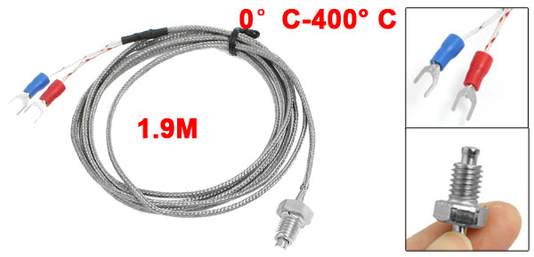 Product Name Thermocouple Type K Type, Screw Type Temperature Range 0-400C Thread Diameter 8mm / 0.31" Fork Terminal Spacing 4.2mm / 0.17" Probe Length 26mm/ 1.02" Cable Length 1.9M/ 74.8" Color Silver Tone, White Net Weight 34g Package Content 1 x Screw Thermocouple - Reviews