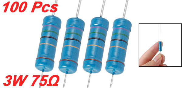 75 Ohm 3W Watt Axial Lead Metal Film Resistor 100 Pcs