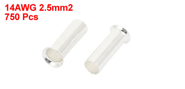 750PCS Uninsulated Wire Ferrules EN2512 for 14AWG 2.5mm Square Cable
