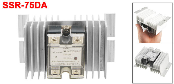 Product Name Solid State Relay + Heat Sink Model SSR-75DA Material Metal, Aluminum, Plastic Rated Load Current 75A Input DC 3-32V Output AC 24-480V Total Size (Approx.) 12.7 x 7 x 5.5cm / 5" x 2.8" x 2.2" (L * W * H ) Color Black, Silver Tone Weight 262g Package Content 1 x Solid State Relay