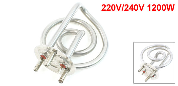 Product Name Water Heater Element Shape 2U Tube Bundle Type Main Material Stainless Steel Rated Voltage 220V/240V 1200W Bar Diameter 7mm / 0.28" Overall Size(Approx.) 10 x 7.5cm/ 4" x 3"(L*Max.D) Thread Diameter 3.9mm / 0.15" Color Silver Tone Weight 105g Package Content 1 x Water Heater Element